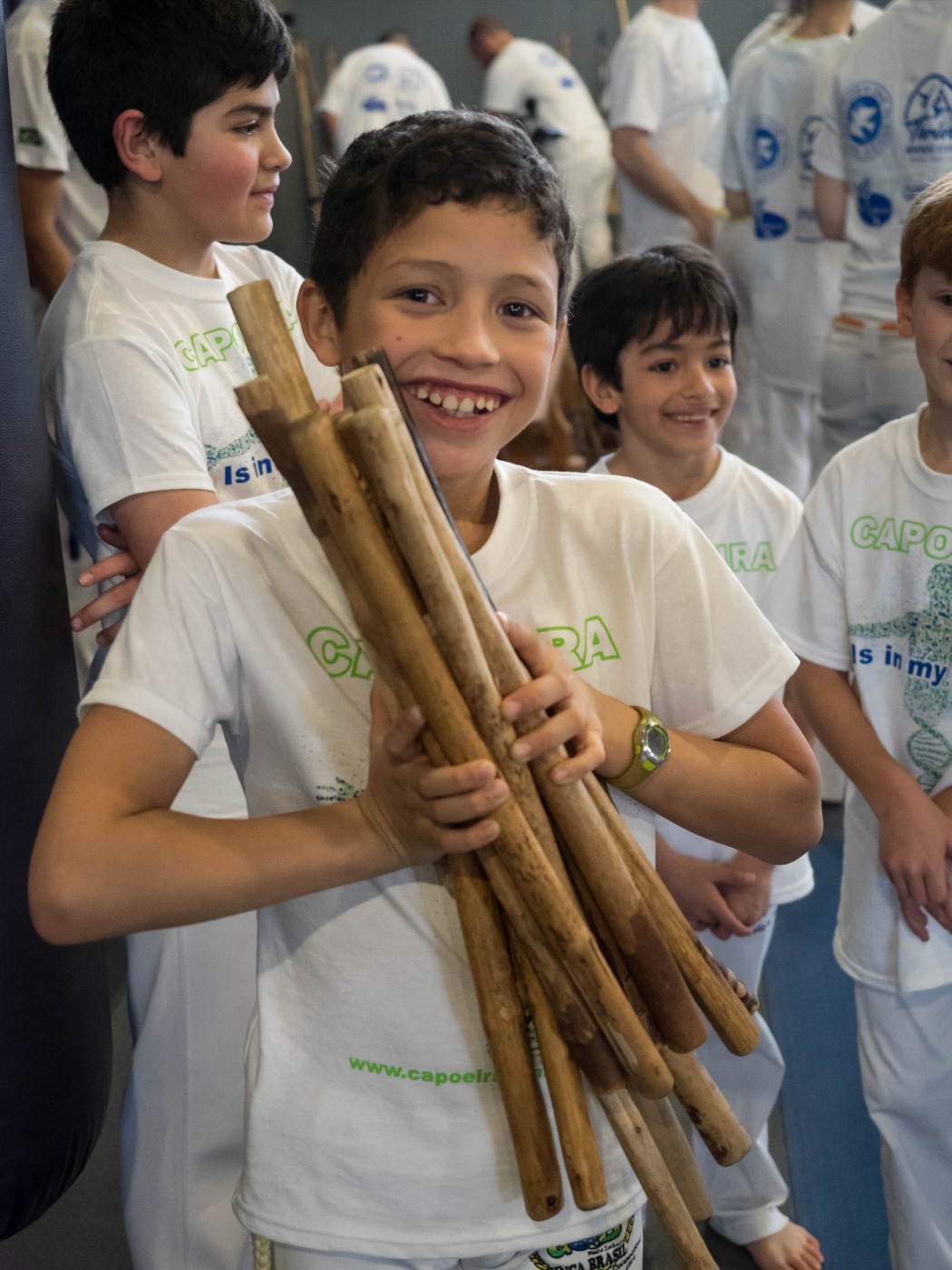This exciting single or multi-day workshop teaches participants of all ages world history through the art of Capoeira. Capoeira is a unique Brazilian art form that combines elements of martial arts, dance, music and acrobatics. All Capoeira students learn the history behind Capoeira and the story of the people and places that brought it to life. They will gain an understanding of how events around slavery were connected to geography and tied to civics and economics. Capoeira was developed more than 400 years ago by African slaves who were training to gain their freedom. Students will understand that there are still relevant lessons to learn from Capoeira today. Capoeira is considered a game and is accompanied by music and unique instruments specific to the art form. Depending on the setting and group, workshops can be more or less physically participatory & accommodations can be made for students with disabilities. Though this workshop incorporates a lot of learning, the emphasis is on moving and FUN!